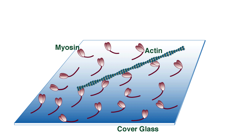 The unloaded in vitro motility assay has all the advantages of solution biochemistry (i.e., temp, ionic conditions, substrate concentrations etc. are easily manipulated); however, movement, one of the fundamental properties of molecular motor function, can also be quantified. In this assay myosin is adsorbed to a silanized coverslip surface. Fluorescently labeled actin filaments are then allowed to bind to the surface-bound myosin. Movement is initiated by the addition of ATP and recorded with an ICCD camera.